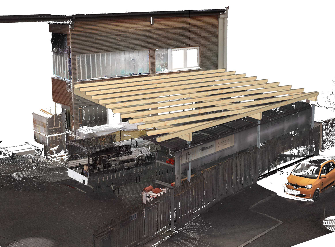 Diese moderne Technik setzen wir auch in unserer eigenen Zimmerei ein, um Projekte exakt zu planen und passgenau umzusetzen. Durch den Einsatz modernster 3D-Laserscantechnik erfassen wir jede Struktur millimetergenau.